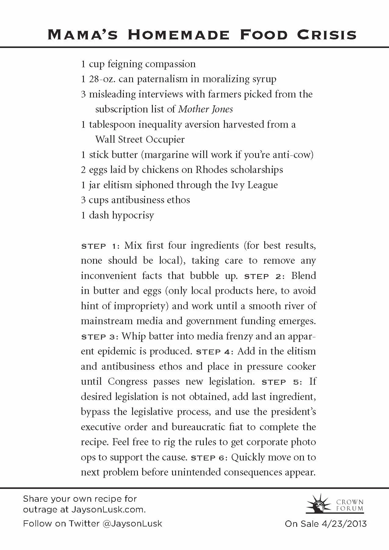 A Thanksgiving Recipe November 20, 2012 The marketing folks over at Crown Forum just send me this little excerpt from the book - Enjoy.